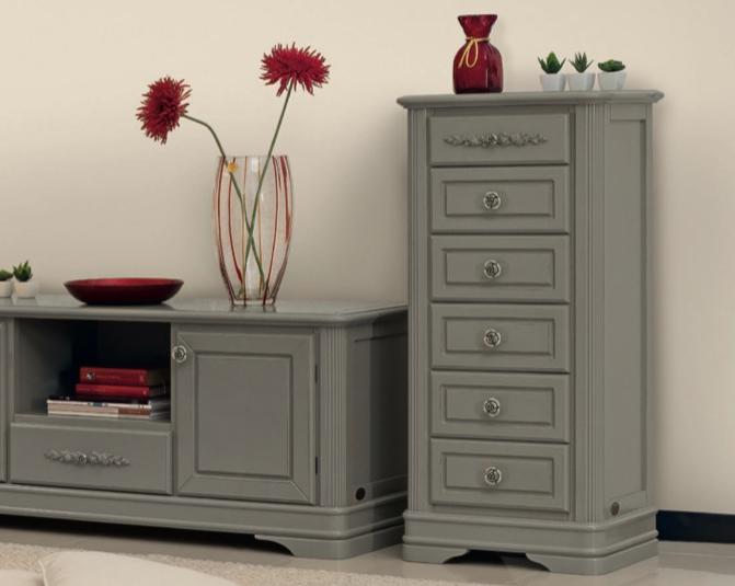 Высокий комод из коллекции Артемида от фабрики Monte Cristo Mobili выполнен в неоклассическом стиле из натурального массива дерева в оригинальном сером оттенке.