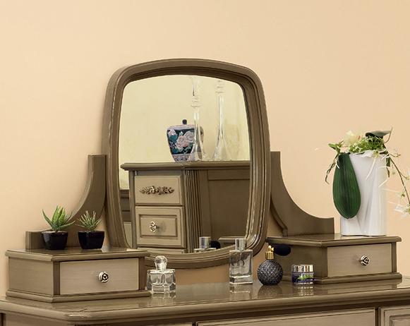 Оригинальное зеркало в раме с двумя выдвижными ящиками служит дополнением к туалетному столу из коллекции Артемида от фабрики Monte Cristo Mobili.
