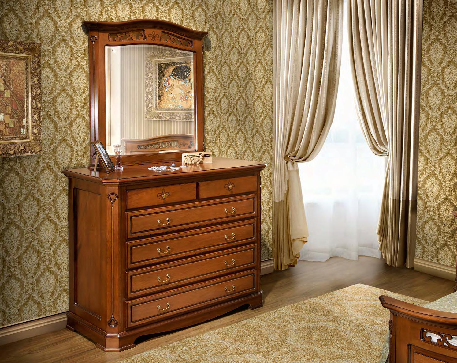 Зеркало в раме из натурального дерева служит дополнением к комоду из коллекции Джино от фабрики Simex.