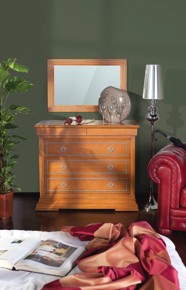 Прямоугольное зеркало в раме из массива дерева служит дополнением к бельевому комоду из коллекции Палацио от фабрики Монте Кристо Мобили | Monte Cristo Mobili.