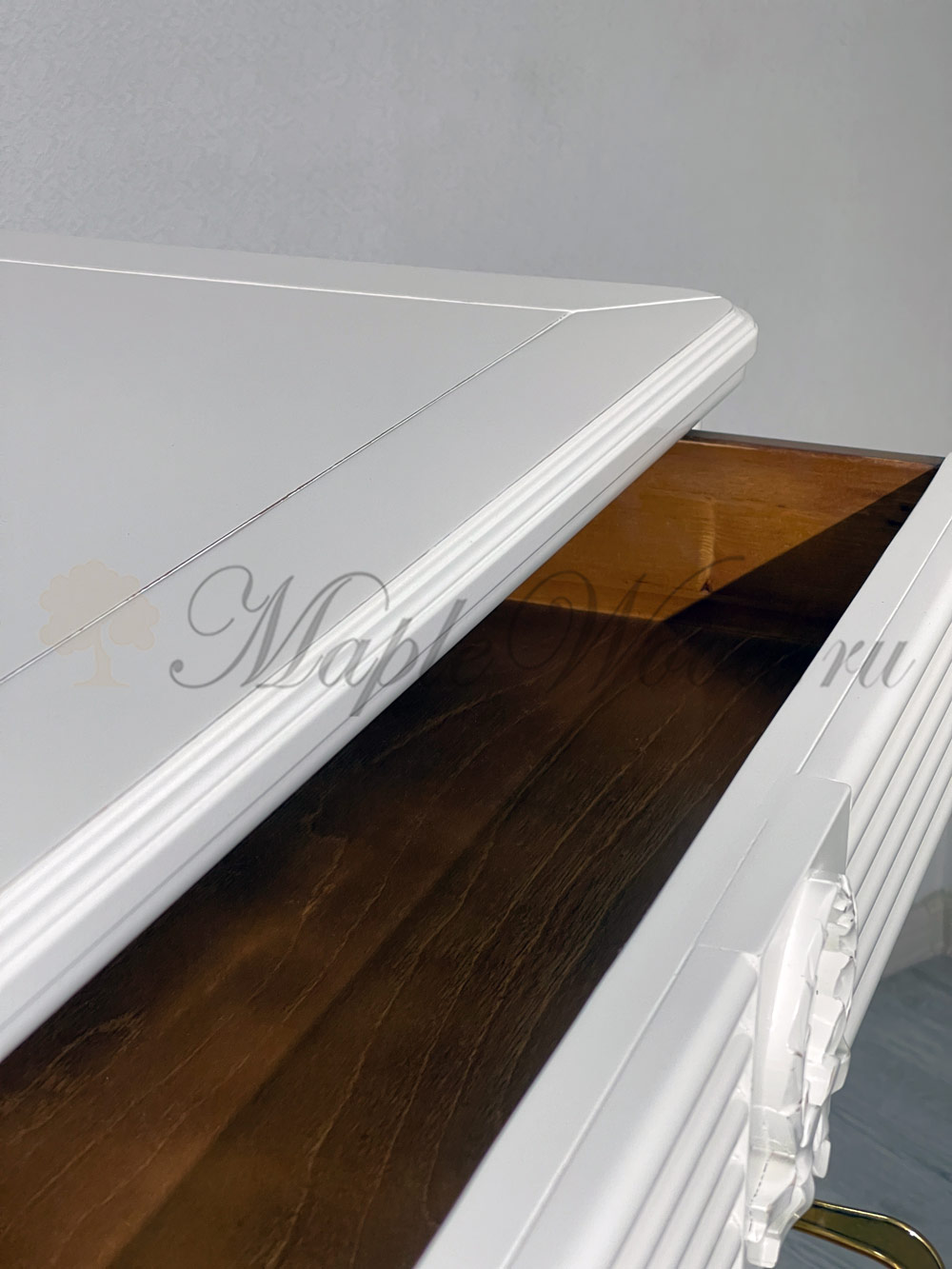 Комод выполнен в итальянском дизайне из натурального дерева и декорирован акцентной фрезеровкой и фирменной эмблемой, которая подчеркивает оригинальность изделия.
