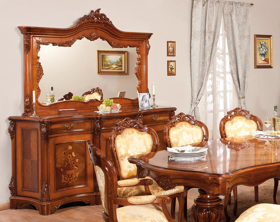 Большое прямоугольное зеркало из коллекции Мара Белла от фабрики Simex служит дополнением к буфету для гостиной из одноименной коллекции.